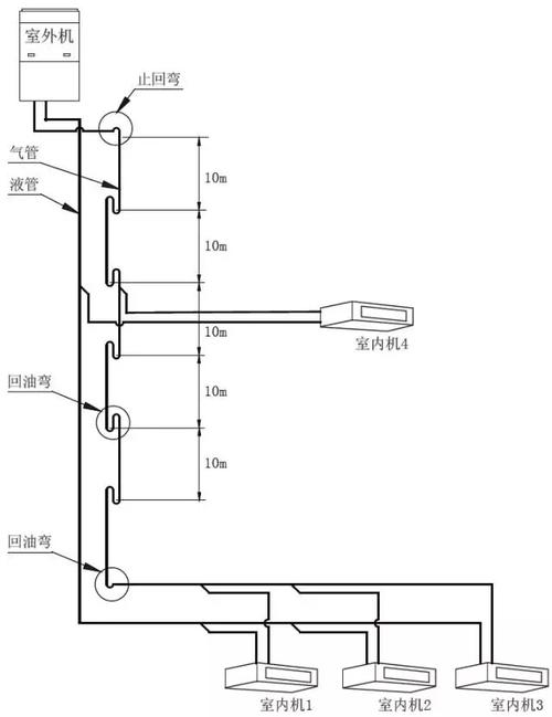 2、在路管路上增加回油彎,每六米增加一個(gè)回油彎;