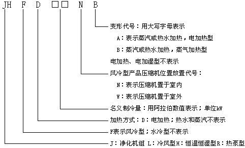 型號示例:ZK5Y 表示名義制冷量為5000 m3/h的組合式空調機組。